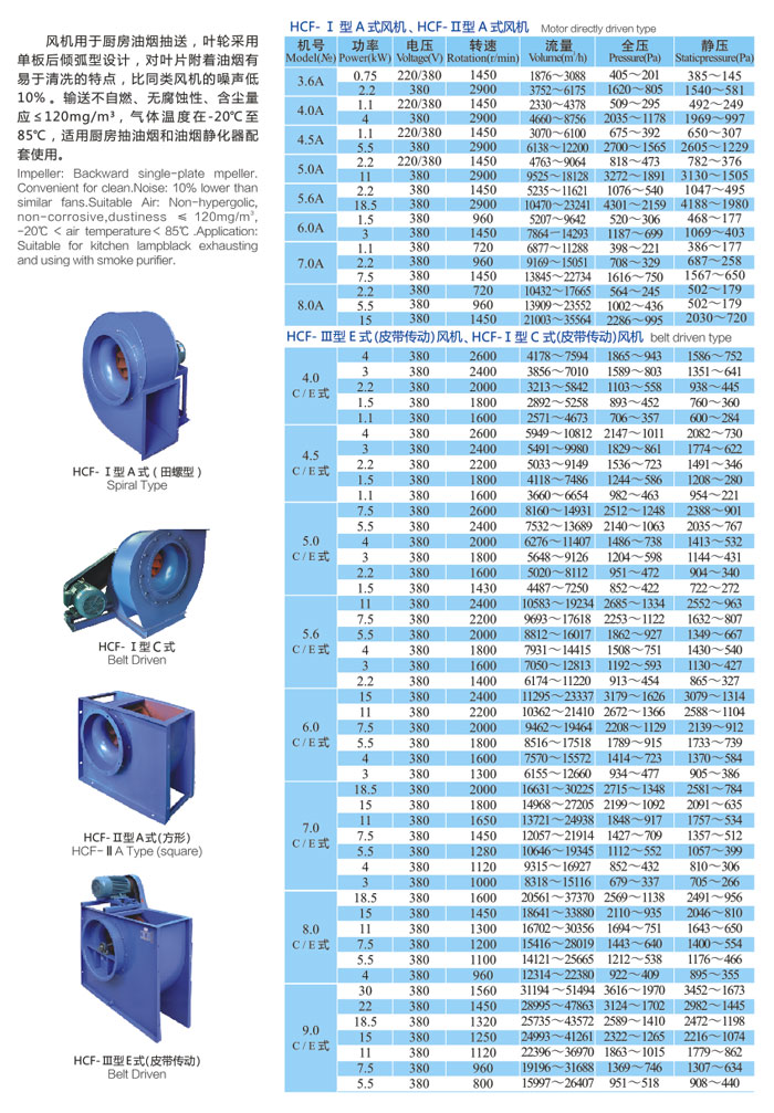HCF系列單板后傾式廚房油煙抽風(fēng)機(jī)